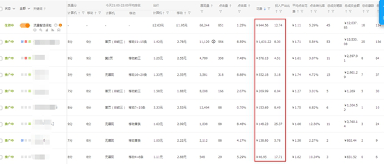 主推计划权重高计划的点击率和质量分都是比较成熟的,优化起来比较上手了,做好创意标题优化好的转化词是可以加大创意标题里面去的,这里选择的关键词选择是大词与精准长尾词前期8到20个即可现在是筛选到15个左右,人群持续投放,保持长期的人群优化,现在的优化思路就是提升我们整体流量的精准性和价值,保证我们核心词的排名、花费的同时,转化词和低价引流词及收藏加购成本较低的词,根据账户的实际情况进行花费把控并对计划转化消耗进行调配。