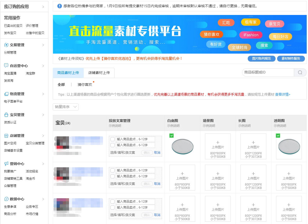 有些学生没有之前上架之后没有做白底图,现在换害怕影响权重,那么我们可以去商家素材中心进行上传,也是有机会可以抓取到的。