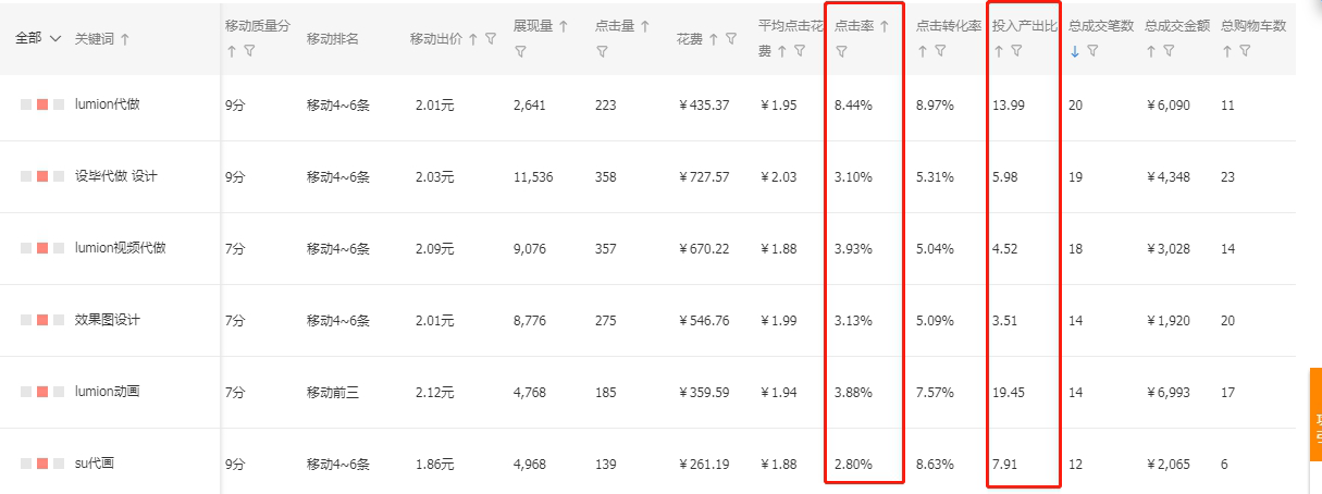 对计划所投放关键词进行历史数据分析以及行业回升趋势预判,重点投放市场大盘与宝贝类目属性相关性高,以及展现量点击量充足,点击率转化率较高的关键词,提升关键词在计划中相关性指标的质量得分。根据每日预算,合理进行关键词删减与优选投放,重点培养核心词,提高计划点击率,从而在计划优化之始,提升质量得分,为后期降低ppc,以及拉高roo做准备。