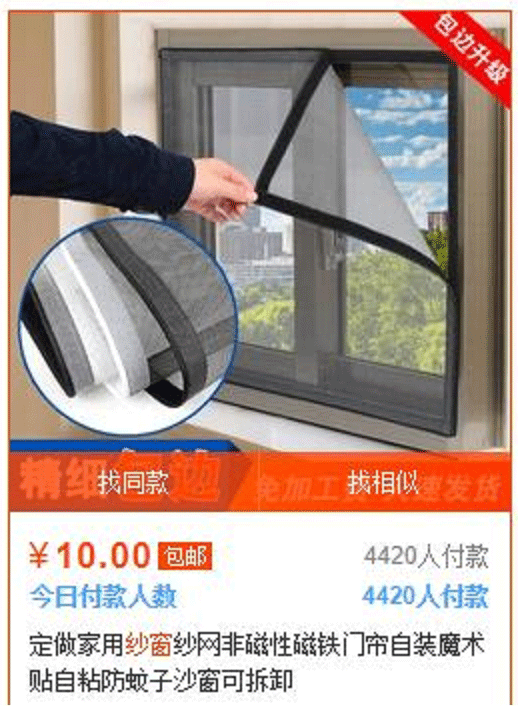 第三,小类目看消费行为不要去管细分。纱窗这个类目上,同属要买纱窗的人,这类人本来就不多。需要做的是丰富自身的产品线,满足所有需要纱窗的人,而不是去挑其中的某些人群。