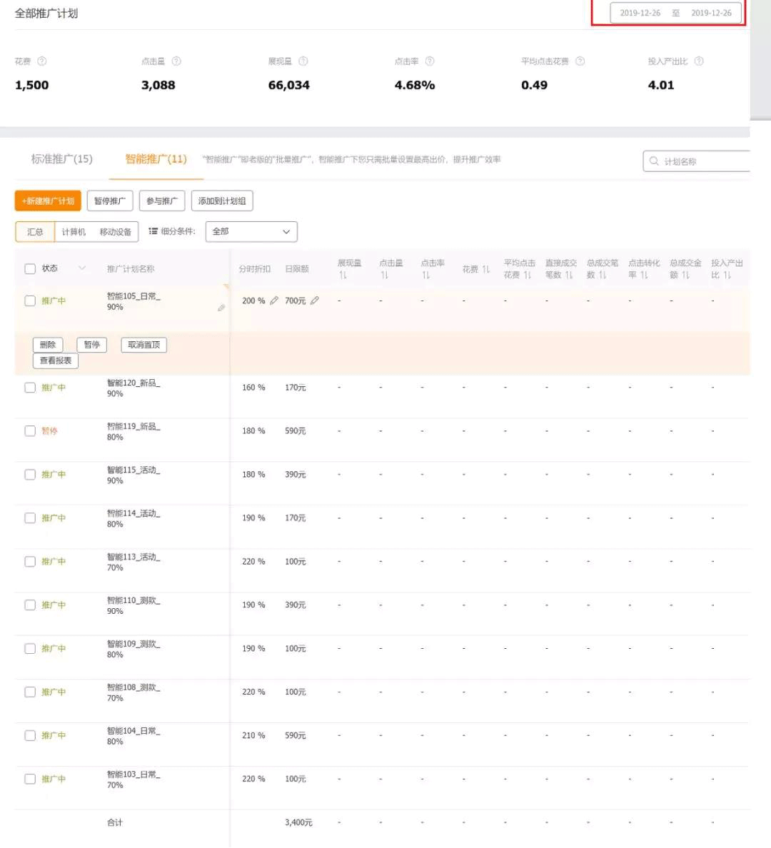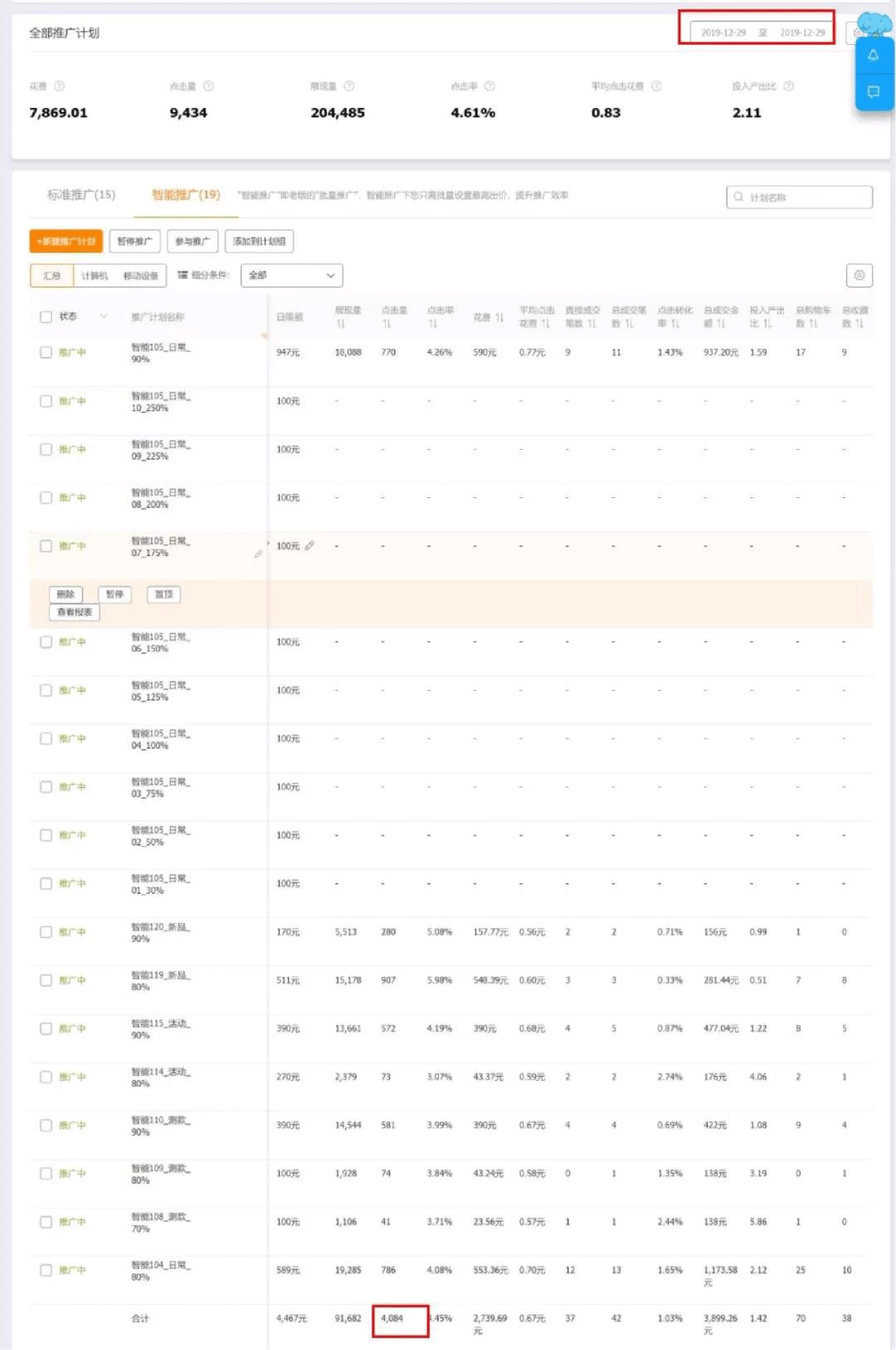 29日的时候,我们智能计划流量,已经到了4084每天了。