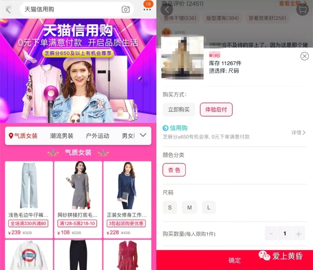 为了打消用户对购买商品前要先付款的心理顾虑,天猫联合芝麻信用上线了“天猫信用购”: