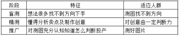第一阶段:盲测阶段,要求速度要快,主要是收集数据和分析数据。做第一阶段的测试,避免在创意不好的点上造成过多的花销