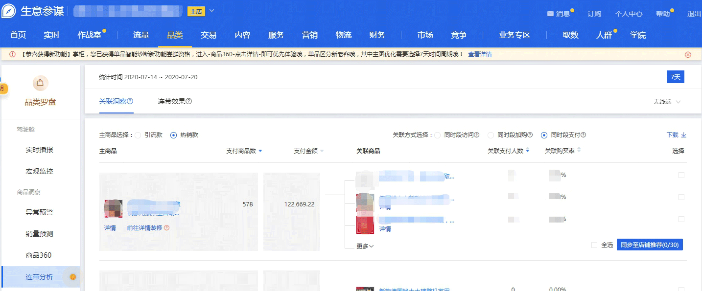 当然了,搭配的时候我们也要注意,我们搭配的产品适不适合进行搭配(可以通过客服和客户交流中,客户比较喜欢的搭配款式;或者到生意参谋-品类-连带分析-关联洞察里面进行查看)。