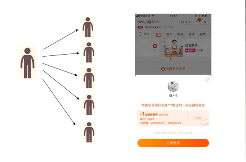 普通裂变券:父券分享-子券回流(直塞券给好友),好友领子券,进店核销。