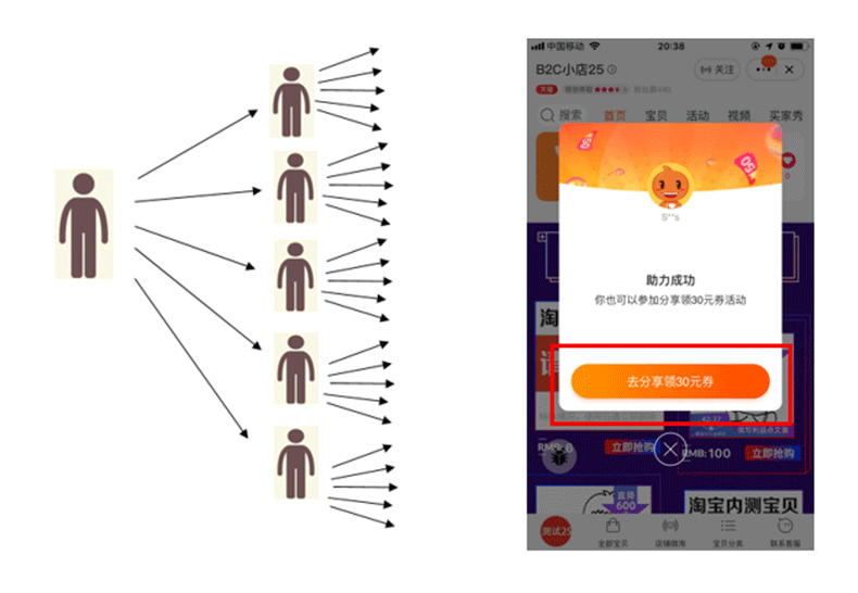 分享模式:勾起【引导被分享者去分享主券】