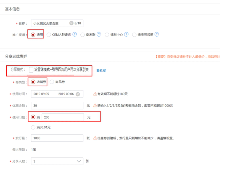 第二步:创建滚雪球裂变券-子券