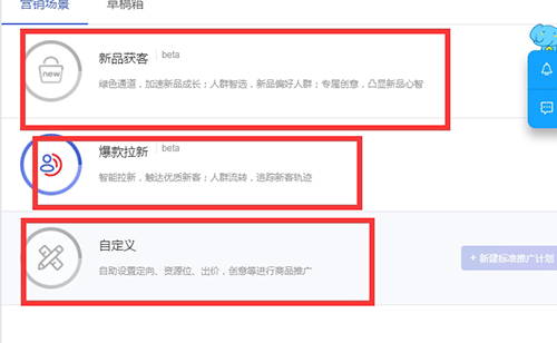 一般在设置营销场景的时候,一般性的宝贝建议选择日常销货场景进行营销,如果店铺的产品点击率好,转化率好,流量获取比较容易的这样的产品可以选择拓展新客,根据自己的需求要选择场景。