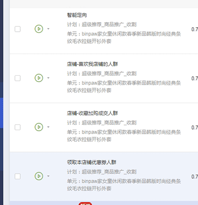 设置定向:店铺收藏加购人群,喜欢店铺的人群,领取本店优惠券人群,尽量提高cpc。