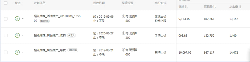 3、商家没有推广经验,以系统智能计划为主,未设置自定义计划;