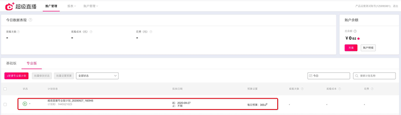 1、可以提前建计划,专业版可以在直播前即可创建计划,并且在投放时间内的投放中的计划,系统会根据主播的直播间开播自动开始投放,大大的简化了每次根据直播间下单的繁琐操作