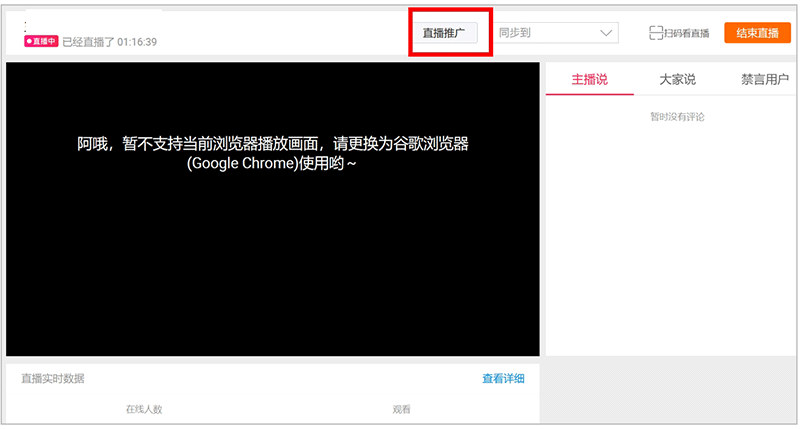 1.1,进入中控台,在直播中,点击“直播推广”按钮即可创建推广和实时订单管理。