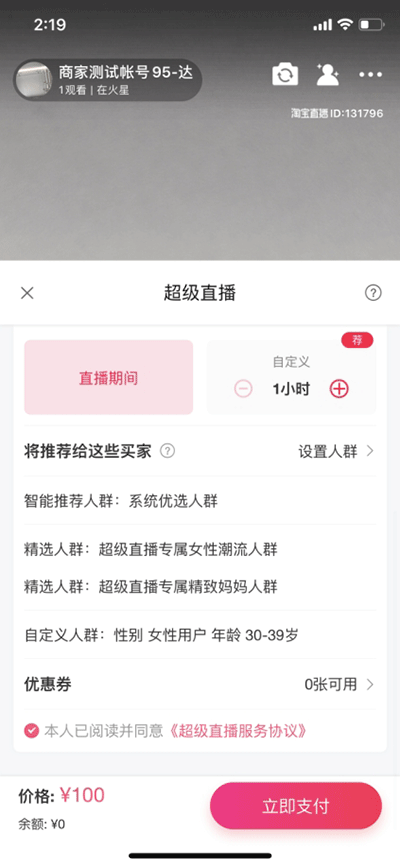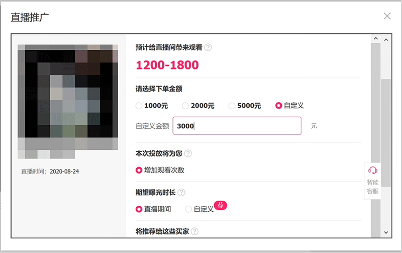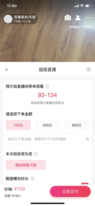 按照页面选项设定好推广计划,推广金额最低100起,推广时长目前最低0.5小时,投放目标暂时由系统默认增加观看次数。