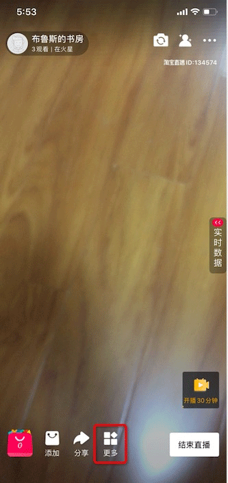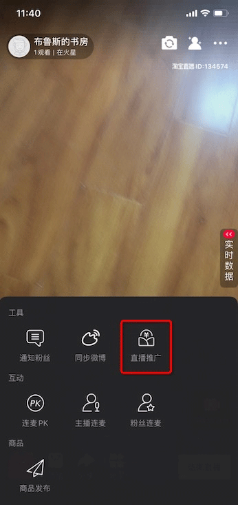 进入正在直播的直播间,点击底部更多,在工具栏里点击“直播推广”按钮即可进入订单创建页面。