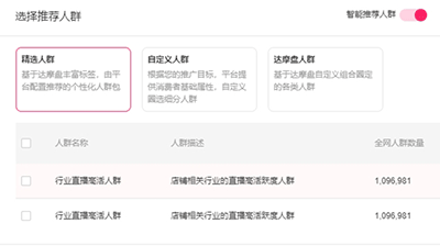 基础版可支持自定义人群的圈选,且系统智能推荐人群可手动关闭,大家可根据自己店铺的实际情况,选择是否开通智能推荐人群。