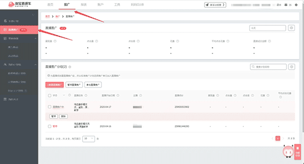 1.买家中心--营销中心--我要推广--直通车--推广--直播推广--新建计划