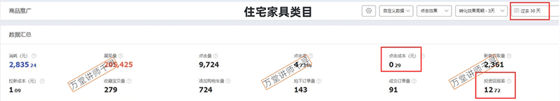 上图为住宅家具类目超推商品推广数据,下图为高客单价女装类目超推商品推广。