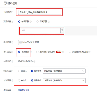 1、计划名称:设置尽可能直观到通过计划名字就能知道里面推广的宝贝是什么人群。还可以直接加上所推宝贝的简称,方便后续优化。