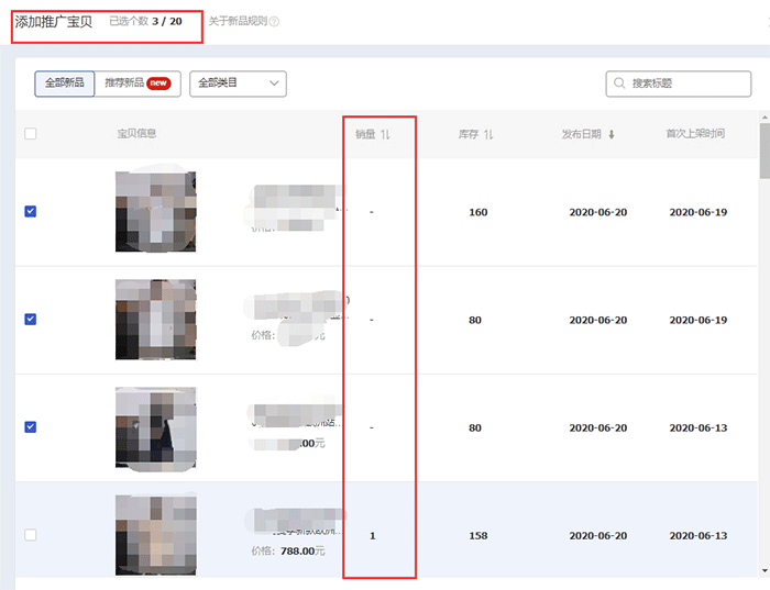 新品推广的宝贝必须要在上架60天以内的(部分类目不具备推广权限,可以查看新品规则),初期推广是为了给宝贝引流(测试),建议添加的宝贝数量不宜过多且尽量选择同一时间上架的产品(基础差不多)。