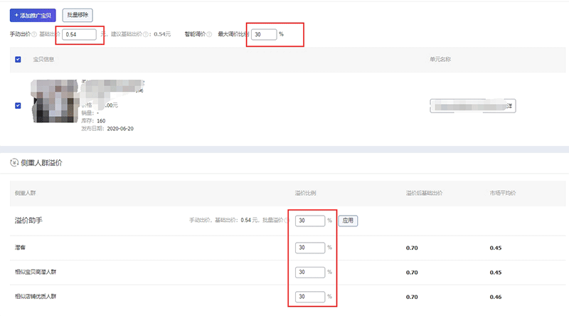 3、侧重人群溢价:和智能调价的溢价一致即可。一般10%-30%均可。