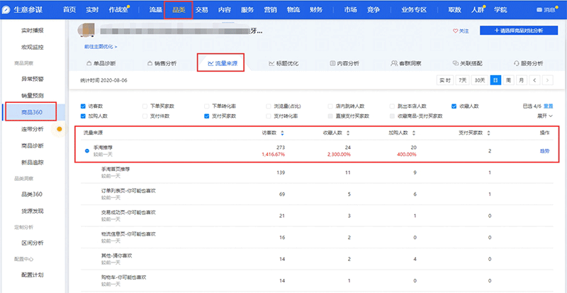 通过上图我们就可以看到手淘推荐的流量给我们带来了什么数据(收藏加购还是转化?),同时也能看到除了手淘首页推荐以外还有手淘的其他位置都有展示。。。