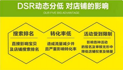 DSR评分对店铺的影响:卖家服务评级指标分的影响:该指标分将成为数字娱乐市场乃至淘宝非实物行业的一项重要指标分,基于该分值将对卖家在市场经营产生影响。