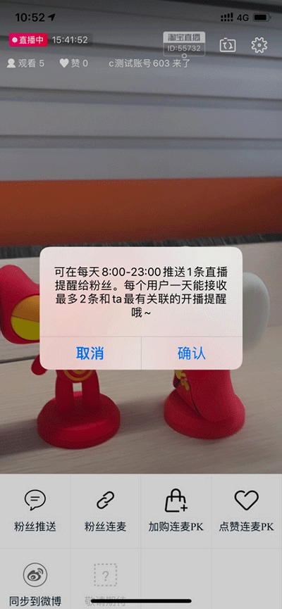 我正在直播中,点击下方“更多-粉丝推送-确定”