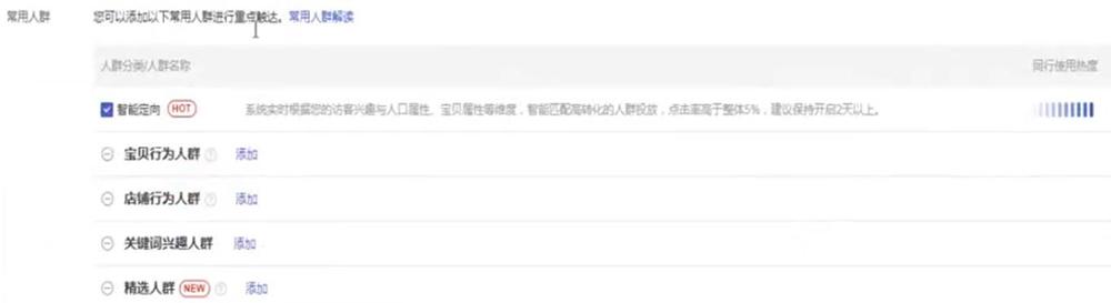 常用人群只开智能定向,其他的都不要打开。