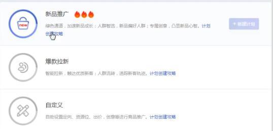 想要通过超级推荐打爆首页流量,我们需要通过通过开启新品推广+爆款拉新+自定义3个计划。