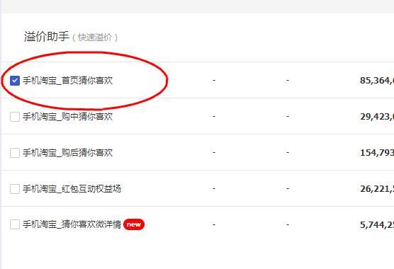 资源位只选“首页猜你喜欢”、“购中猜你喜欢”、“购后猜你喜欢”,全部100%溢价。