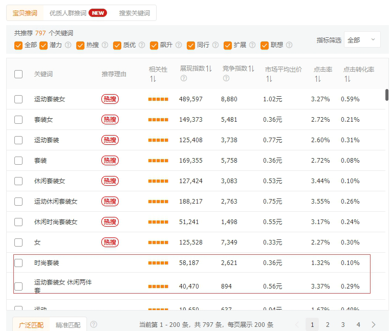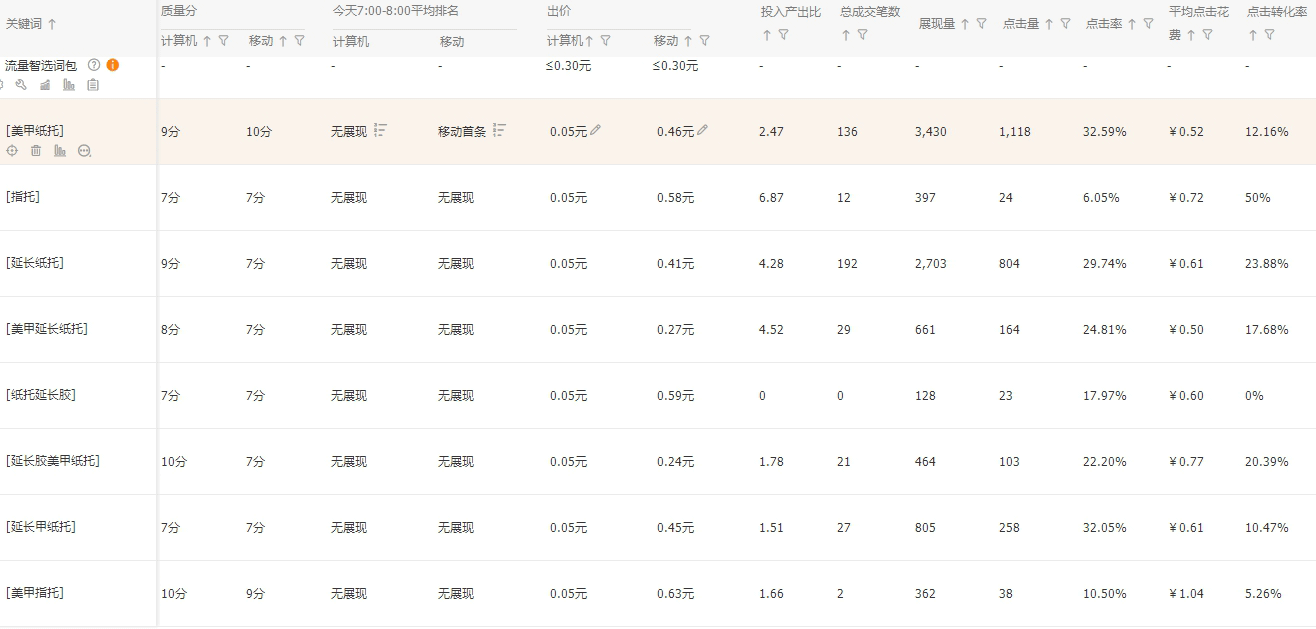 特别提醒:为了追求高点击率,而去做精做少人群、或者抢前三、或者只加一些点击率高的关键词,那么你的流量选择范围将会被缩小。