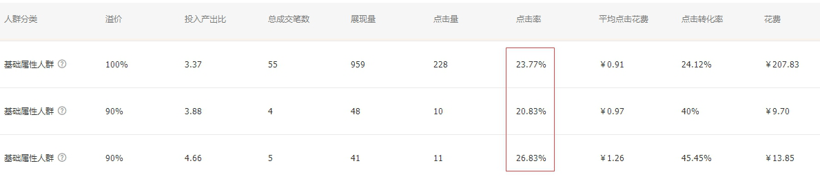3 人群,投放的人群越精准点击率越高。
