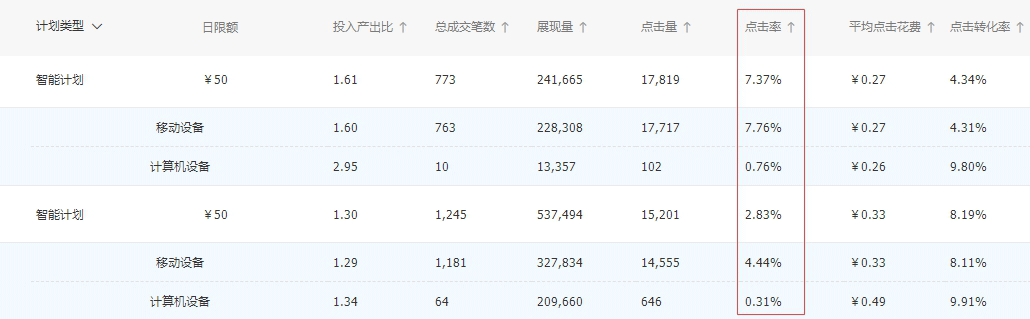 如果一味追求高点击率,那么很可能会牺牲更多的流量机会,把自己的流量局限了,点击单价反而被抬高了。