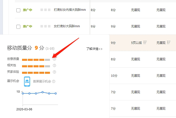 当每天点击量有一定,创意质量这格不满就必须要去优化图片!