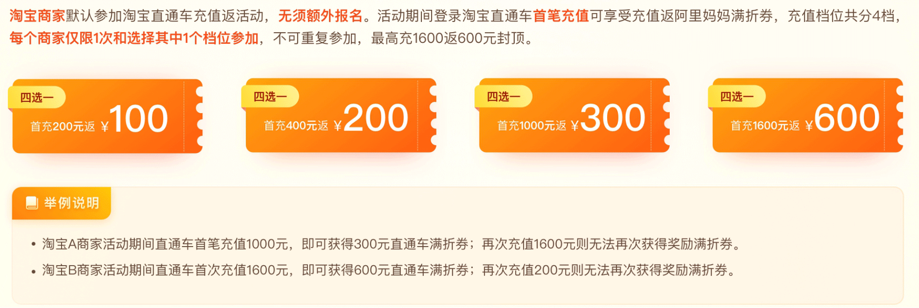 活动一 直通车充值返活动:针对对象:2020年3月15日前已开店且店铺状态正常的淘宝C店商家,无须报名。仅限直通车!