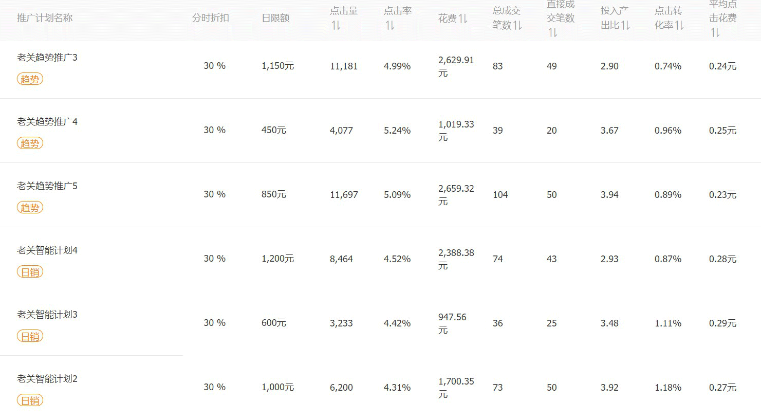我们就是靠这样先优选款式,然后多词多款多计划以及多推广手段结合的推广方式,把店铺整体的直通车流量做到10万的量级。只要流量足够便宜,整体的投产情况通常都是合理的,至于店铺整体的运营数据,我们会在下一篇文章作介绍。