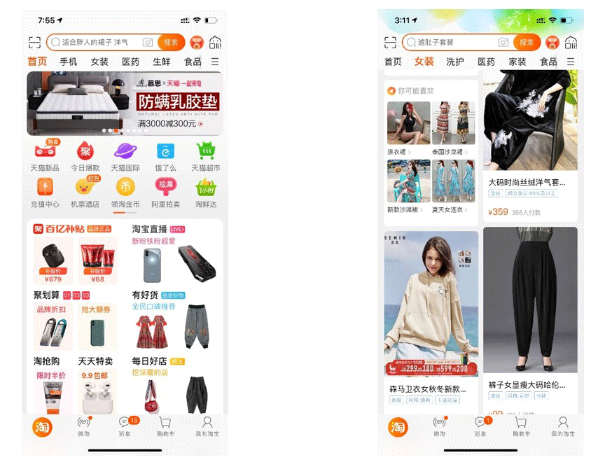 手淘首页的搜索框,我们不选搜索,焦点移到搜索框,app会出现另一些词的推荐。