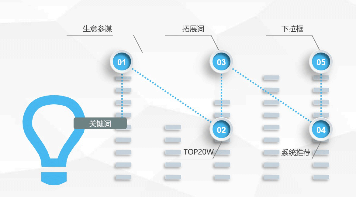 词源主要来自于:生意参谋、后台系统推荐词、拓展词、搜索下拉框、top20w词表