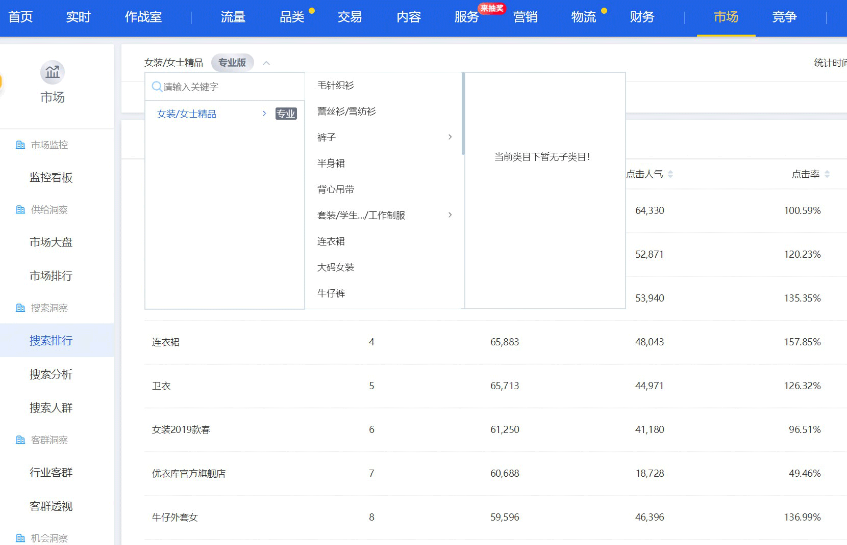 生意参谋的取词渠道来自于页面 市场 下面的 搜索洞察