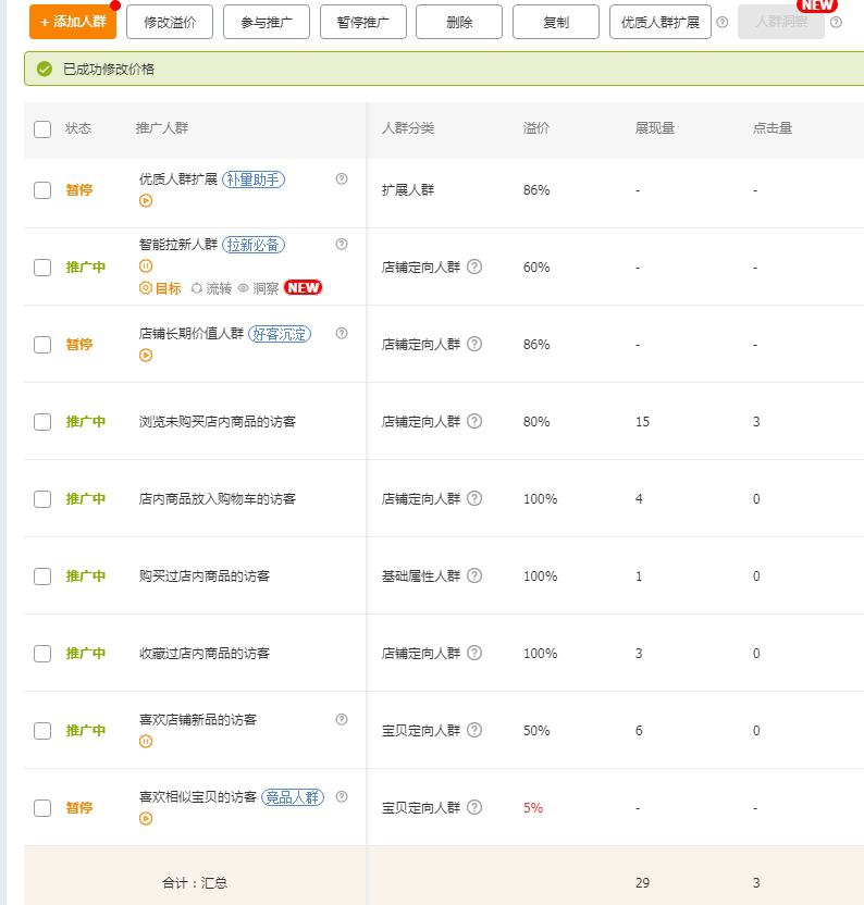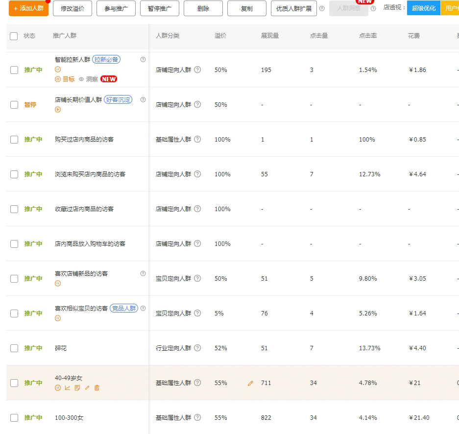 老店由于人群基数是稳定的,产品和店铺也有人群标签,所以系统能够自动识别产品去推送到精准的客户面前。我们只要按照下图去设置人群就可以。