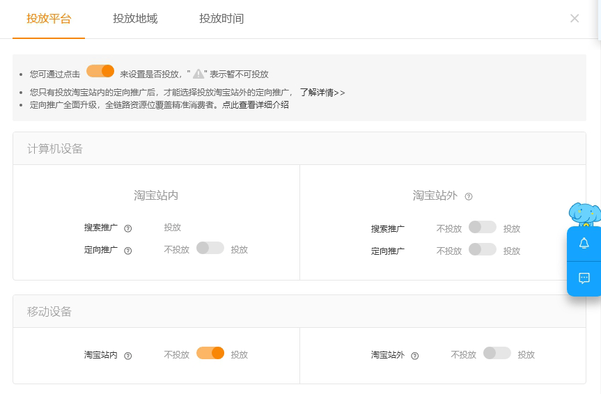 平台设置如图下图设置单开移动站内即可,切忌不要点开其他的平台推广。PS:其他平台操作后续课程我会讲解。