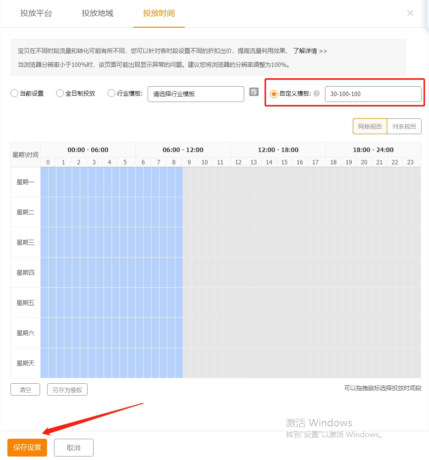 PS:直通车建议全天投放,不要停。不想投放的时间设置30%分时折扣即可。
