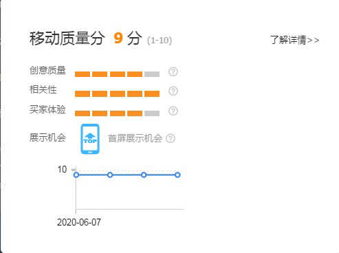 1.创意质量:推广创意近期的关键词动态点击反馈。