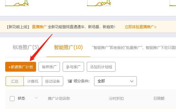今天的课程,新手直通车智能推广技巧。首先打开直通车进入智能推广页面点击--新建推广计划。