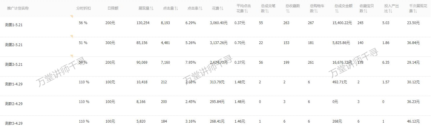 ①、用直通车测款和测图;建立3个计划测款(将产品依次加入3个标准计划中,添加不同的关键词统一出价测出好款)
