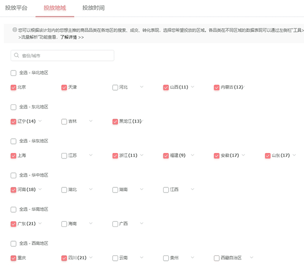 4.投放地域:优选10-15个测试后点击率高的地域