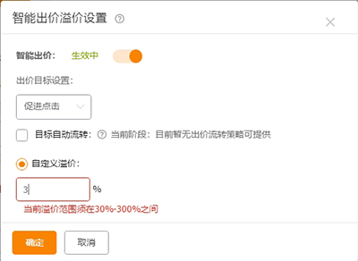 智能出价的可溢价范围是30%-300%之间。