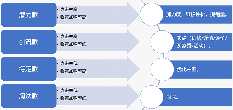 针对以上部分我们就可以通过直通车进行产品的基本筛选,主要保留潜力款和引流款即可。