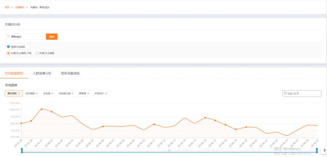 在这里我们可以看到查看的关键词不同指标的市场趋势情况: