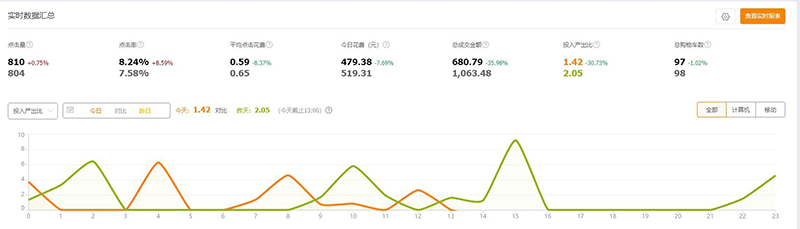 我们同样可以对比不同时段的投入对应的产出,参考时长建议一个购物周期3-7天,记录一周后,我们就可以发现各个时段之间的花费占比及产出金额的占比,在预算有限的情况下,我们把钱花在投产高的时间段,让每一分钱花的更有价值。